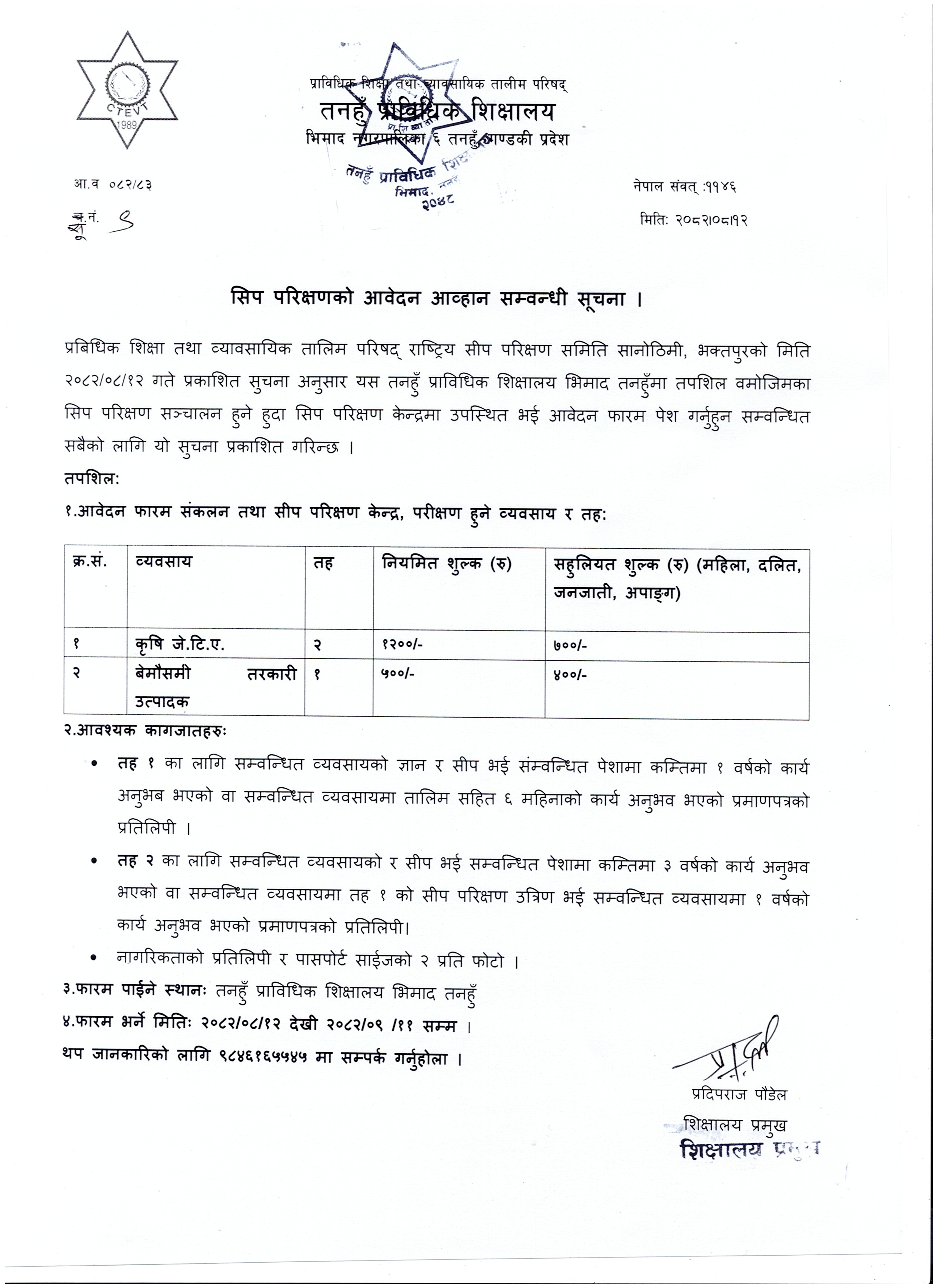 सिप परिक्षणको आवेदन आव्हान सम्वन्धी सूचना ।